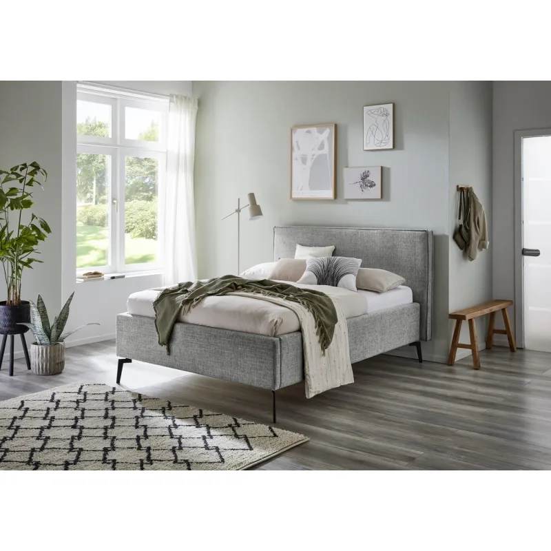 Minkšta poliesterio audinio lova su patalynės dėže ant juodų metalinių kojų. Pasirinktinai: 7 zonų kišeninių spyruoklių dvipusis čiužinys (TTFK 500), drėgmę reguliuojanti klimato kontrolės zona, atraminis komforto putplastis iš 2 pusių, veltinio slėgio skirstytuvas iš 2 pusių, užtrauktukai iš 3 pusių, aukštis apie 20 cm, apie 500 spyruoklių Pasirenkamas kietumo lygis: H2/H3 arba H3/H4.